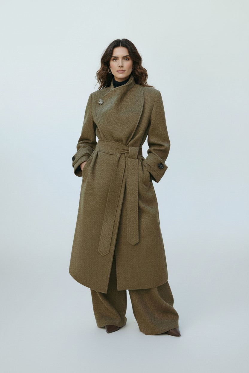 Lana Long Belted Wool Coat